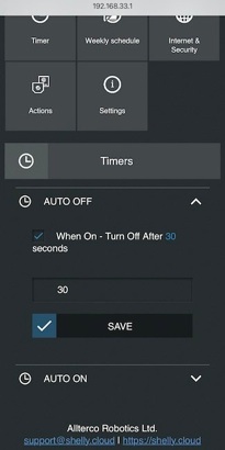 ii)Timer: Auto Off The device will count seconds before automatically closing the relay and turning the power on. However if the relay was already closed, and power on, then nothing will happen. This mode would be pointless if it wasn’t for Option vii above.
