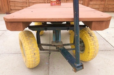 I decided that I wanted a very strong and maneuverable garden trolley that would carry about 200kg of slabs or aggregate. That meant that the under-chassis had to be made of steel which I just couldn’t be bothered to make from scratch.