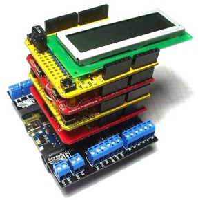 Plug in hardware boards are often called shields which are designed to be stacked on top of the basic board but beware there are complications. There is a highly developed market out for these. Companies like Banggood make decent 3D printer drivers for £13 and much besides. Pimoroni also have a huge range like this lovely colour dot matrix display for £6.
