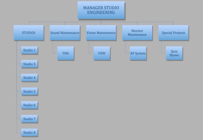 When I joined Studio Engineering in 1984 it was a large department with a lot of smaller sections. The staffing regimes varied considerably from permanent day workers, through long day workers (who worked fewer days) to full AP Shift pattern workers. As the years progressed I moved on but kept in touch and saw many colleagues resign or be made redundant. Sadly, as I remember, the department suffered a lot of organisational politics either from external sources or, occasionally, from within.